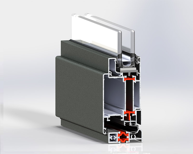 Her türlü pencere ve Kapi açılım varyasyonlarının çözülebildiği, teknik olarak Euro section 1 kanal detayıyla tüm aksesuar çeşit uyumunun sağlandığı, 14.8 mm poliamid ısı bariyeri sayesinde yalıtımlı pencere ve Kapı Seridir.